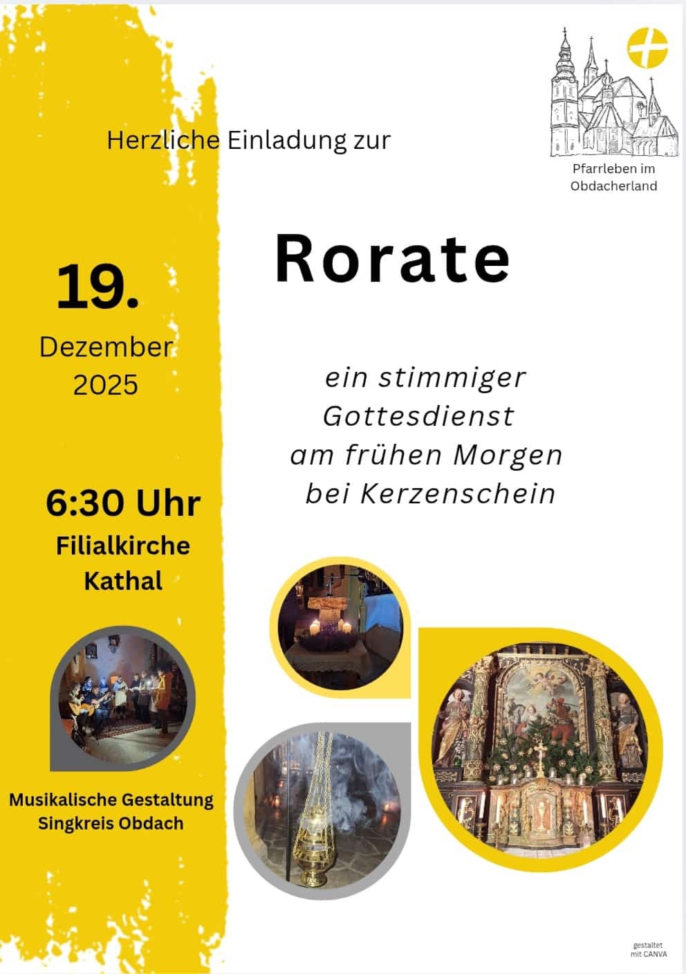 Freitag, 19.12.2025, 06.30 Uhr, Filialkirche Kathal, musik. Gestaltung: Singkreis Obdach