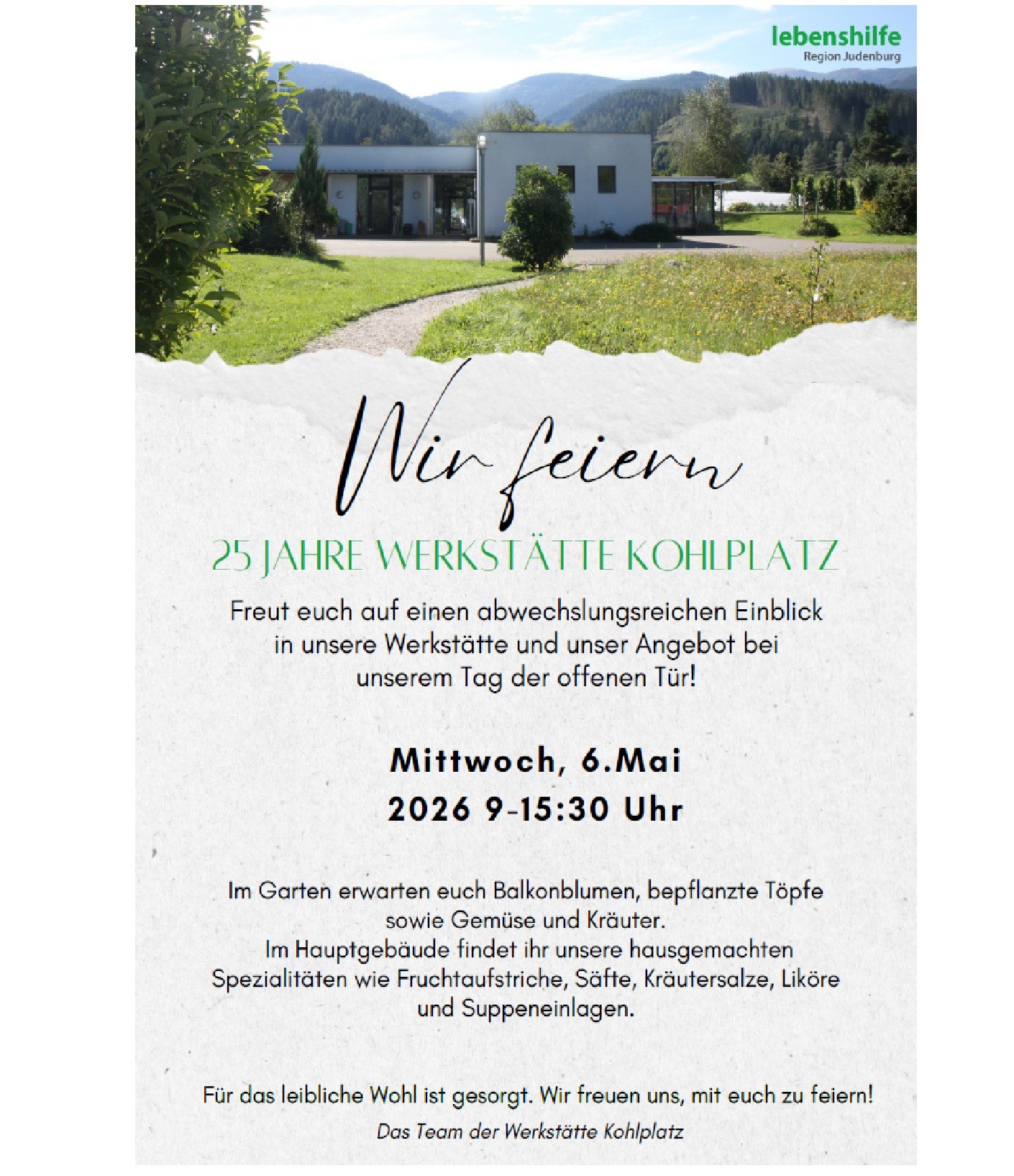Tag der offenen Tür - 25 Jahre Werkstätte Kohlplatz, Lebenshilfe Region Judenburg