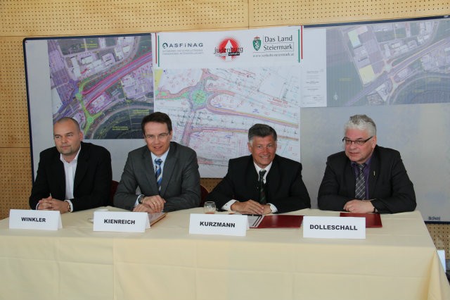 „Was lange währt wird endlich gut!", ist man versucht zu sagen. Seit Jahren wird über die Errichtung einer Anschlussstelle Judenburg Mitte seitens der Stadt mit der ASFINAG (Autobahn- und Schnellstraßen- Finanzierungs- AG), und dem Land Steiermark verhandelt. Jetzt ist die Umsetzung in greifbarer Nähe, denn am 25. Februar unterzeichneten der steirische Verkehrslandesrat Dr. Gerhard Kurzmann, der Geschäftsführer der ASFINAG Service GmbH Mag. Rainer Kienreich und der Judenburger Bürgermeister Hannes Dolleschall die Vereinbarungsurkunde über die Errichtung und Finanzierung der Anschlussstelle.