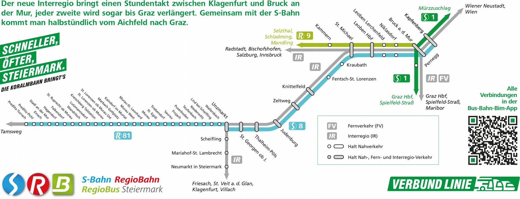 Mit diesen Schlagworten geht am 14. Dezember 2025 die Koralmbahn zwischen Graz und Klagenfurt in Betrieb. Dadurch eröffnen sich einerseits zahlreiche neue Reisemöglichkeiten, andererseits hat die Koralmbahn aber auch umfangreiche Auswirkungen auf den Bahn- und Busverkehr in vielen anderen Regionen der Steiermark – so auch auf die Regionen Murtal und Murau.