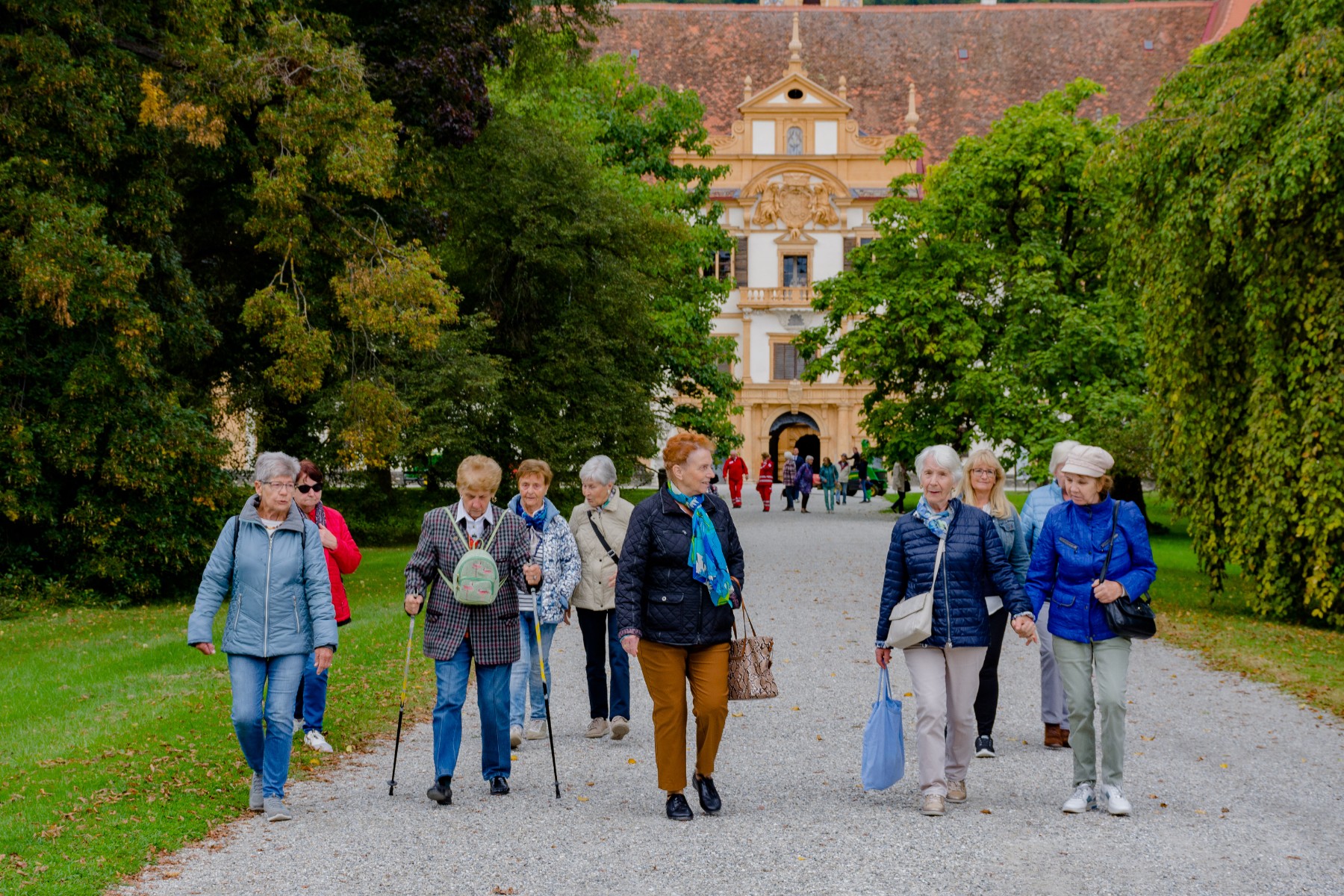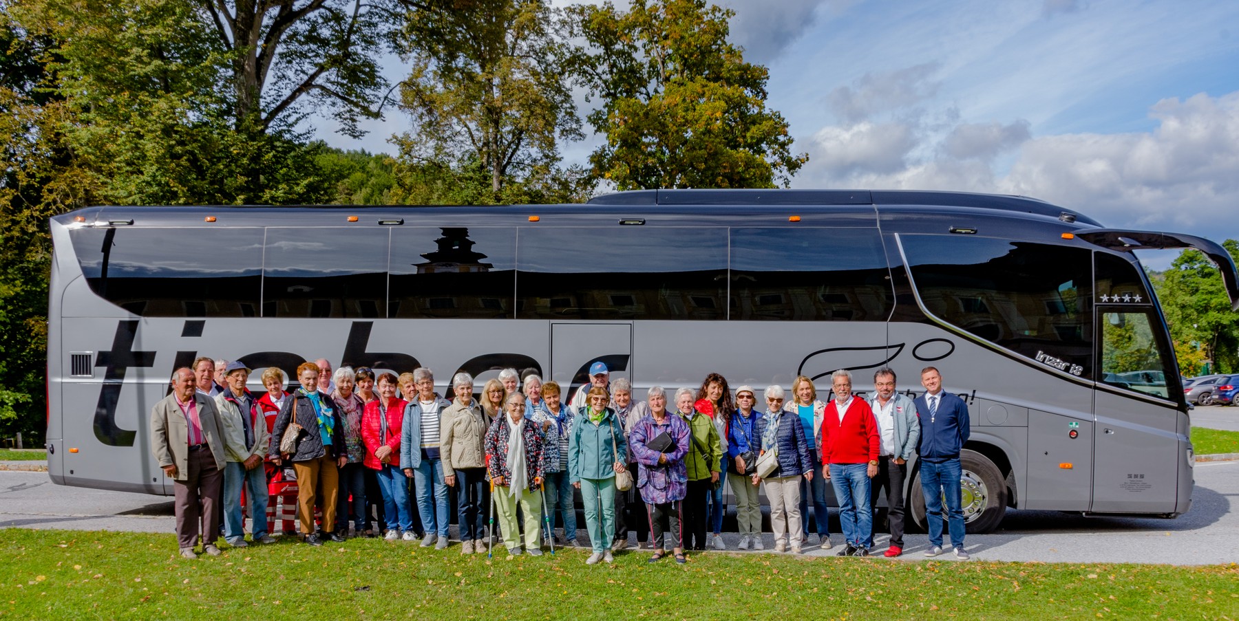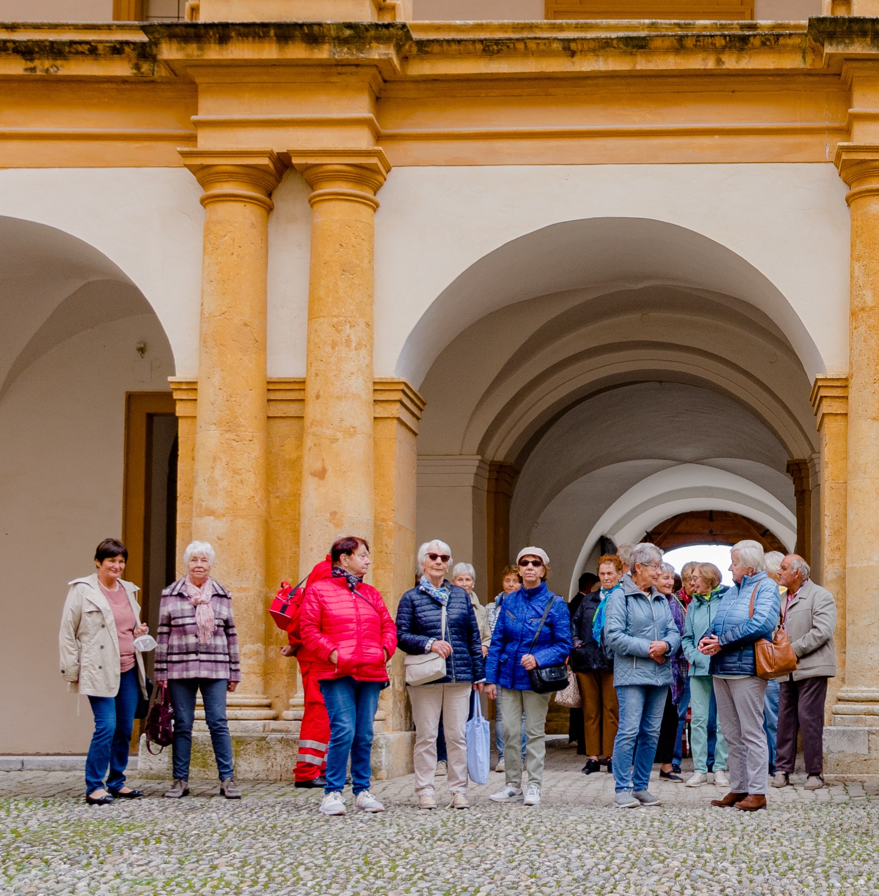 Nach der Anfahrt mit dem komfortablen Luxusreisebus der Firma Tieber erreichte die Gruppe bereits am frühen Vormittag Graz und startete das bestens organisierte Tagesprogramm mit einer Führung durch die Prunkräume von Schloss Eggenberg. Anschließend konnten sich die Senior*innen und Begleitpersonen bei einem köstlichen Mittagessen im Restaurant der Erlebnisbrauerei Rudolf stärkten. Danach erfolgte die Fahrt zum Stift Rein, wo die Basilika besichtigt wurde.