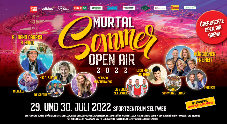 Alle anderen bereits angekündigten Künstler sind weiterhin mit dabei und werden gemeinsam mit Neuzugang Luca Hänni bei der zweiten Auflage des einzigartigen Murtal Sommer Open Air für beste Stimmung sorgen!