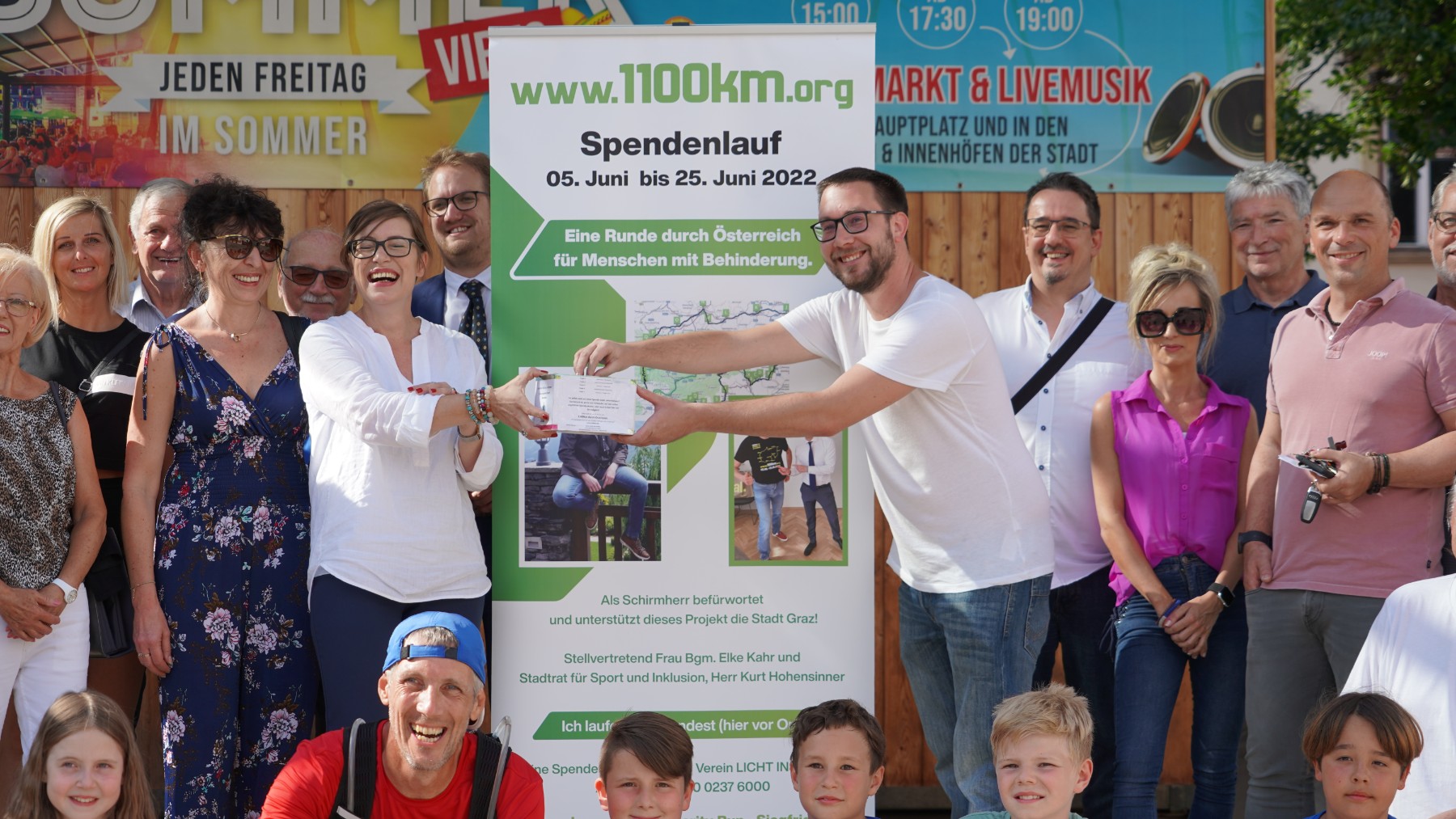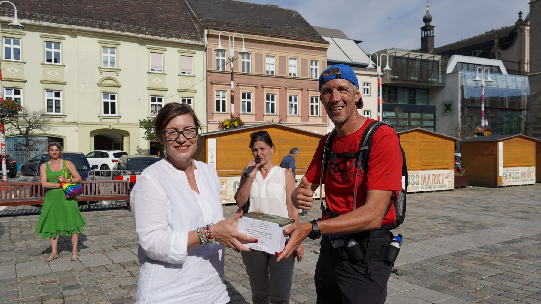 Siegfried Feitl hatte vor 21 Jahren einen schweren Arbeitsunfall. Durch viele helfende Hände steht er wieder voll im Leben. Im letzten Jahr hatte er die Idee, seine Dankbarkeit durch eine außergewöhnliche Leistung zu zeigen, indem er in 14 Tagen 1400 km als untrainierter Sportler gelaufen ist und dabei Geld für österreichische Projekte sammelte. Seine Vision waren 50.000 Euro, dieses Ziel hat er noch nicht erreicht. Daher nimmt er heuer noch einen Anlauf, seine Route führte Siegfried Feitl auch nach Judenburg, wo er von vielen Judenburger*innen freudig empfangen wurde! Das Spendenziel rückt zwar immer näher, aber es braucht Ihre Hilfe! Möchten Sie noch Ihren Beitrag leisten, kann an den Verein LICHT INS DUNKEL oder auf ein eingerichtetes Spendenkonto gespendet werden: