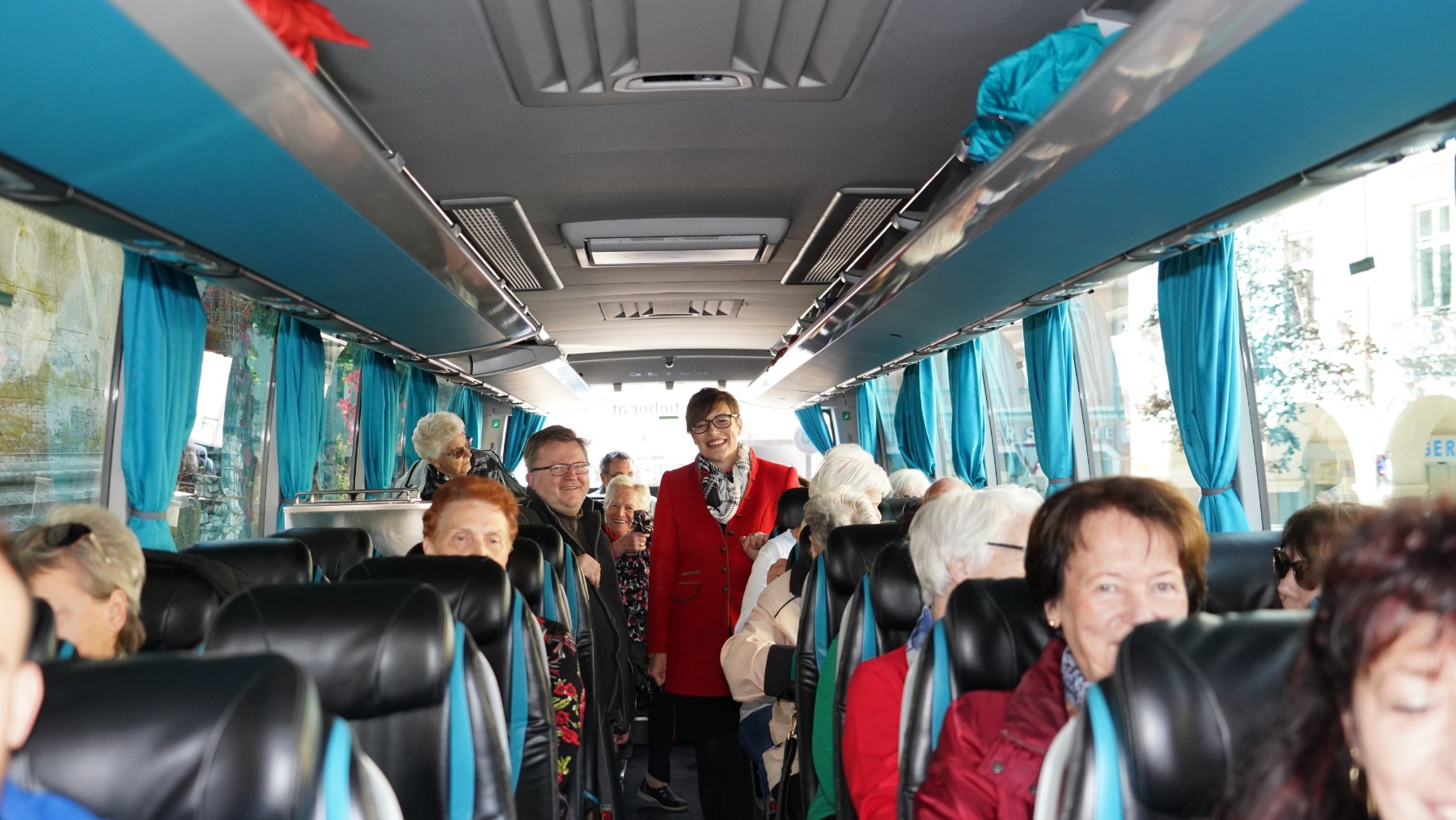 Unsere Bürgermeisterin Fr. Mag.a Elke Florian entsandte die Seniorinnen und Senioren gemeinsam mit Pfarrer Mag. Rudolf Rappel zur "Fahrt ins Blaue".