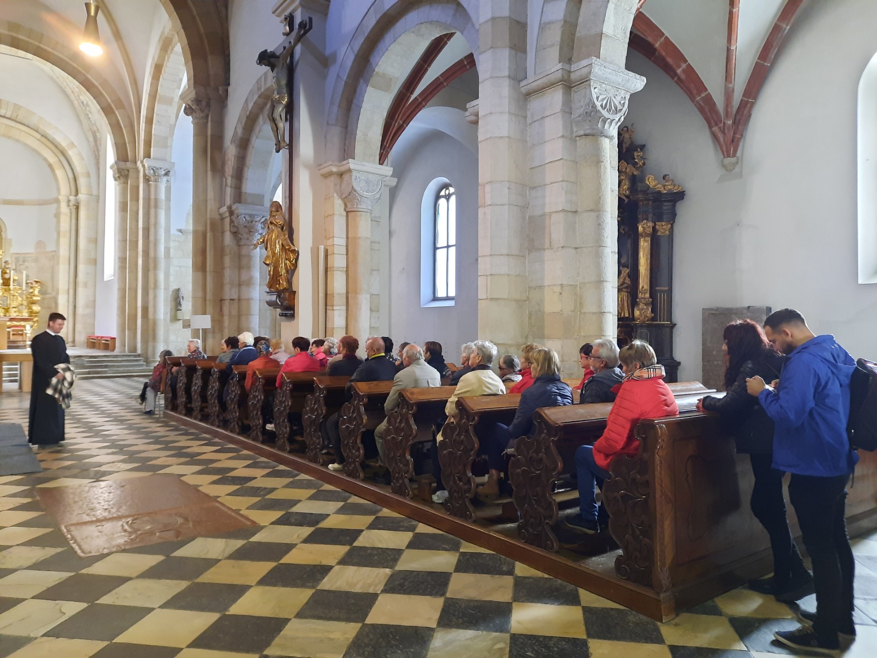 Nach der Anfahrt mit dem komfortablen Luxusreisebus der Firma Tieber erreichte die Gruppe bereits am frühen Vormittag das Benediktinerstift St. Paul, dort konnten die Füße vertreten werden, der Ein oder Andere hat auch ein Kerzerl für seine Lieben angezündet. Begrüßt wurden wir von Pater Petrus der uns vom Leben im Stift erzählte.