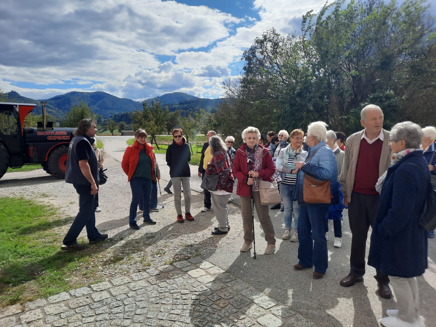 Mit dem Mostlandexpress ging es bei Sonnenschein in einer einstündigen Fahrt zum Schaubauernhof "Zogglhof" – dort gab es eine Führung durch das Obstbaumuseum mit anschließender Produktverkostung.