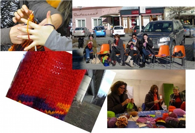 Dann nichts wie auf in das Projektlokal oder bei schönem Wetter auf den Hauptplatz um das Werk weiter dem Ziel entgegen zu bringen, denn gemeinsam schaffen wir etlichen Metern an bunten Schals auch der Tratsch, und Meinungsaustausch, sowie das Gemeinschaftsgefühl kommt nicht zu kurz.