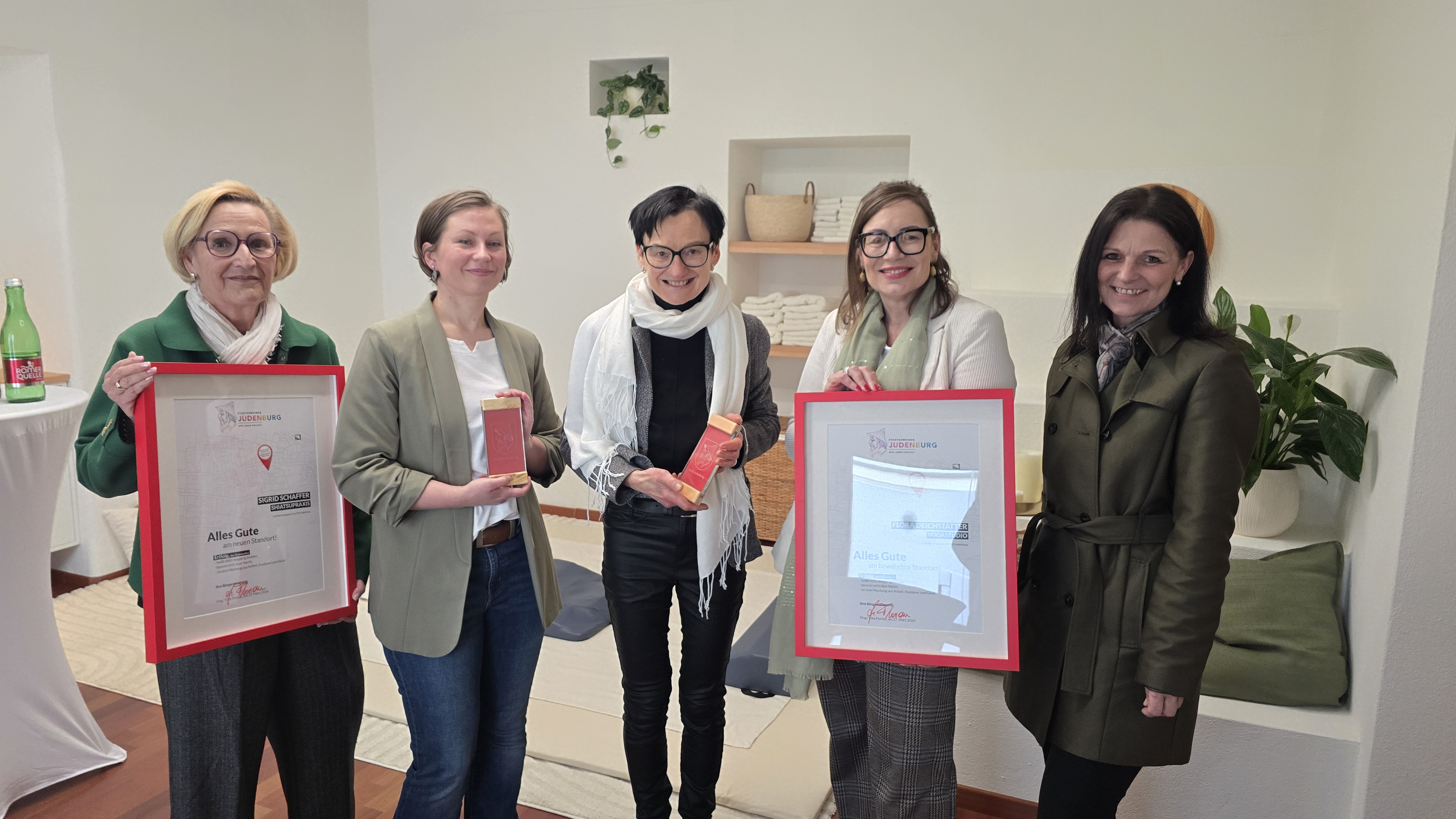 In der Liechtensteingasse 14, also mitten in der Judenburger Altstadt, befindet sich ein modernes Wohlfühl- und Entspannungszentrum, die Betreiberinnen luden kürzlich zum Tag der offenen Tür. Auch Bürgermeisterin Elke Florian und die 2. Vizebürgermeisterin Birgit Heim nutzten die Gelegenheit, und übergaben bei ihrem Besuch das Judenburger Stadtwappen als Zeichen der Anerkennung für die unternehmerischen Leistungen.